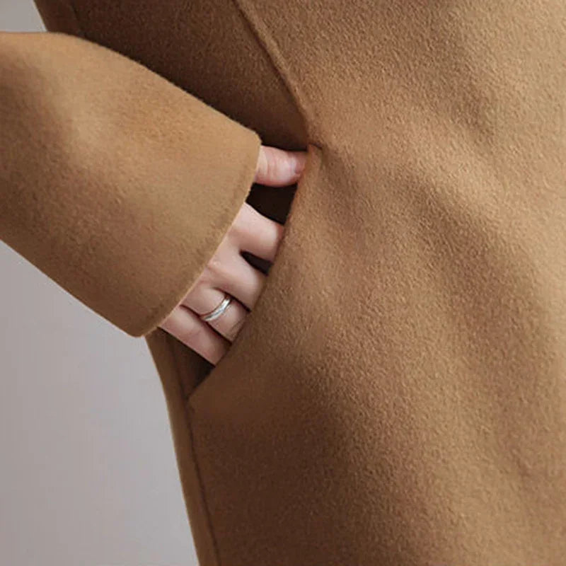 LeAnne Ladies Long Cashmere Coat is ideal for the transitional seasons from fall to winter. With its simple yet chic appearance, this cashmere coat is very soft and comfortable.